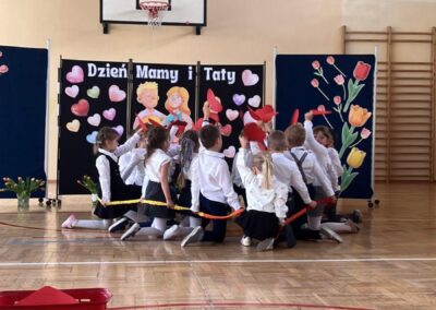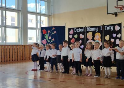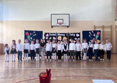 Po występach dzieci wręczyły rodzicom własnoręcznie wykonane upominki – laurki, kwiatki i małe niespodzianki, które stały się piękną pamiątką tego wyjątkowego dnia.