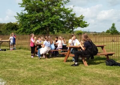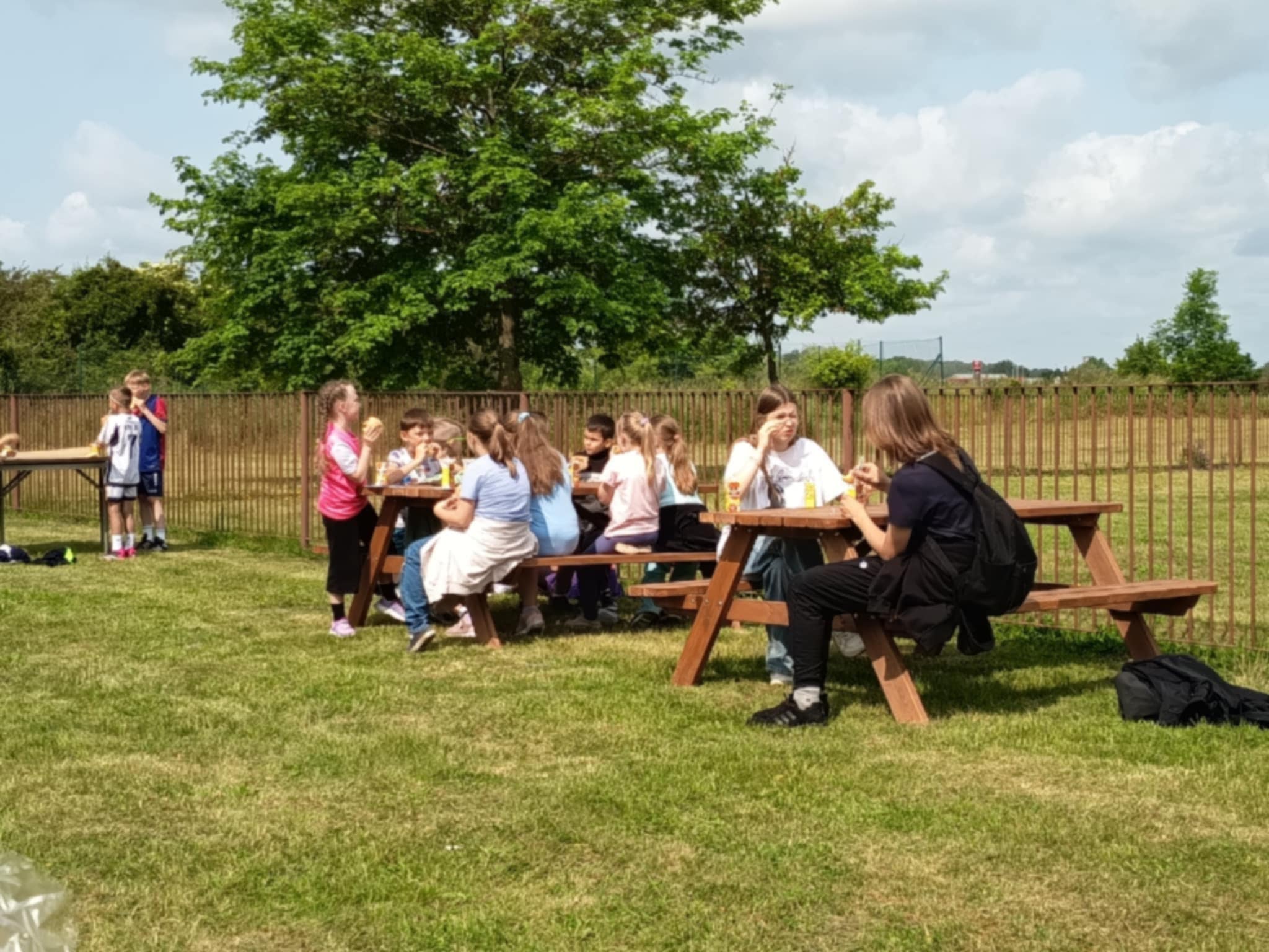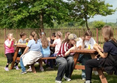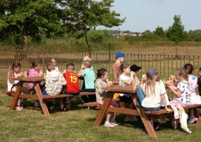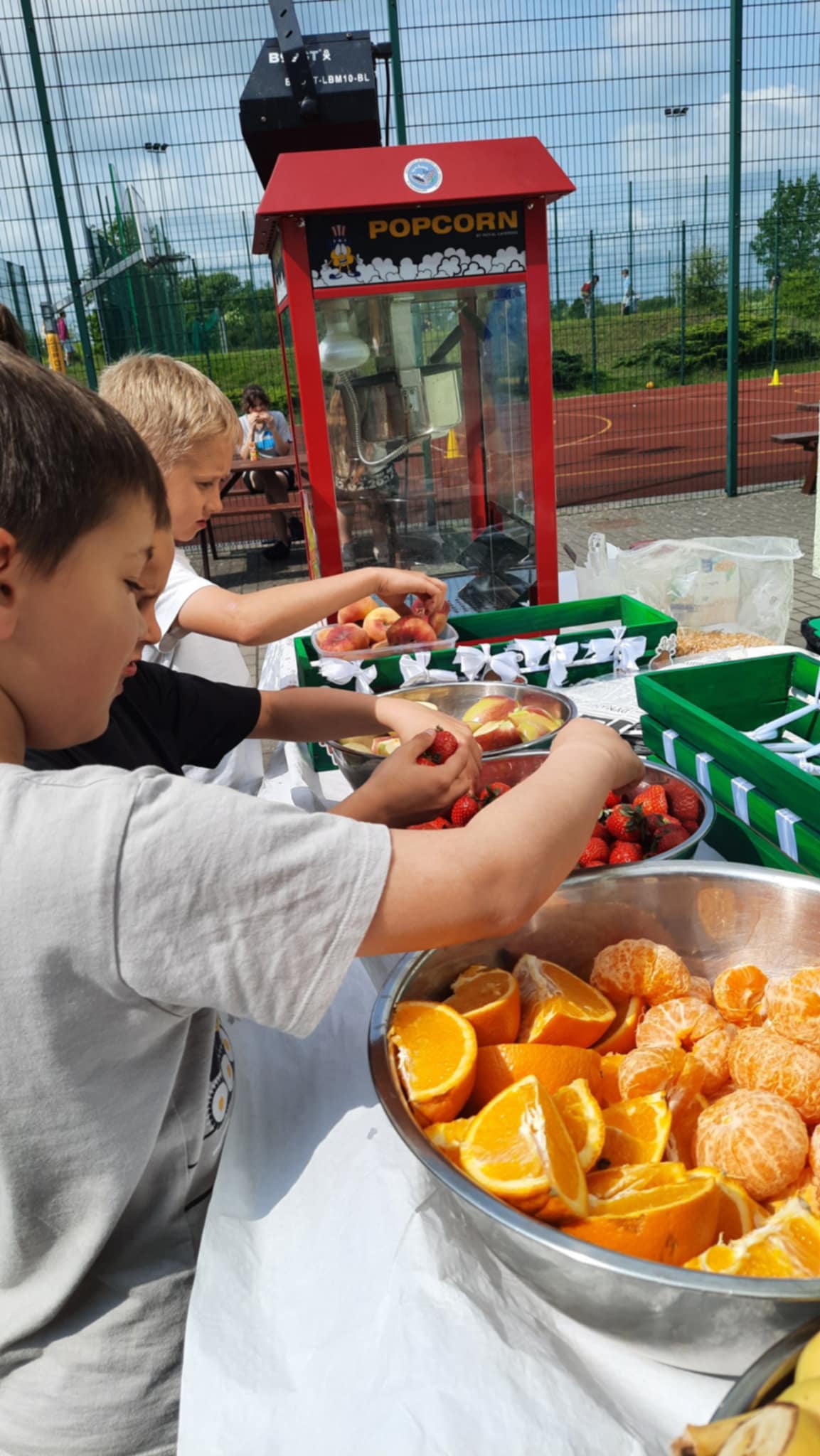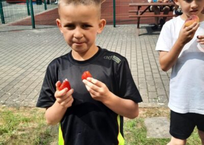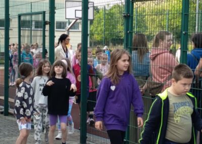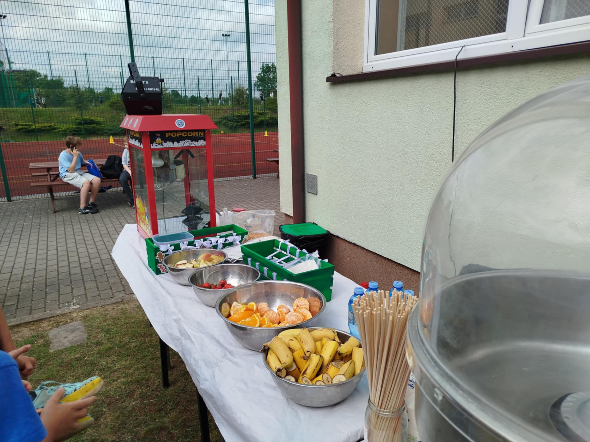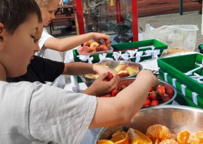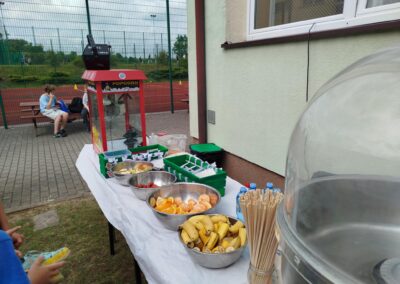 Nie zabrakło również słodkiego poczęstunku – dzięki wsparciu Rady Rodziców dzieci mogły skosztować waty cukrowej, popcornu oraz owocowych przekąsek. Dla mocno spragnionych dostępna była woda zakupiona przez Radę Rodziców.