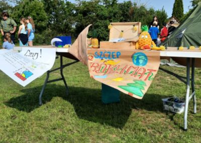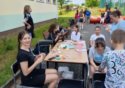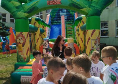 Dla najmłodszych przygotowano strefę zabaw z dmuchańcami, malowaniem twarzy. Starsi uczniowie mogli sprawdzić się w konkursie wiedzy o naszej gminie ,,Zanim cudze pochwalicie, poznajcie swoje okolice”.