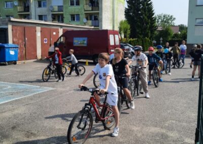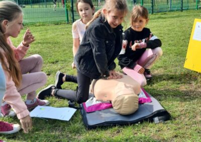 Można było także zapoznać się z zasadami udzielania pierwszej pomocy oraz dzieci z klas czwartych mogły zaliczać egzamin na kartę rowerową.