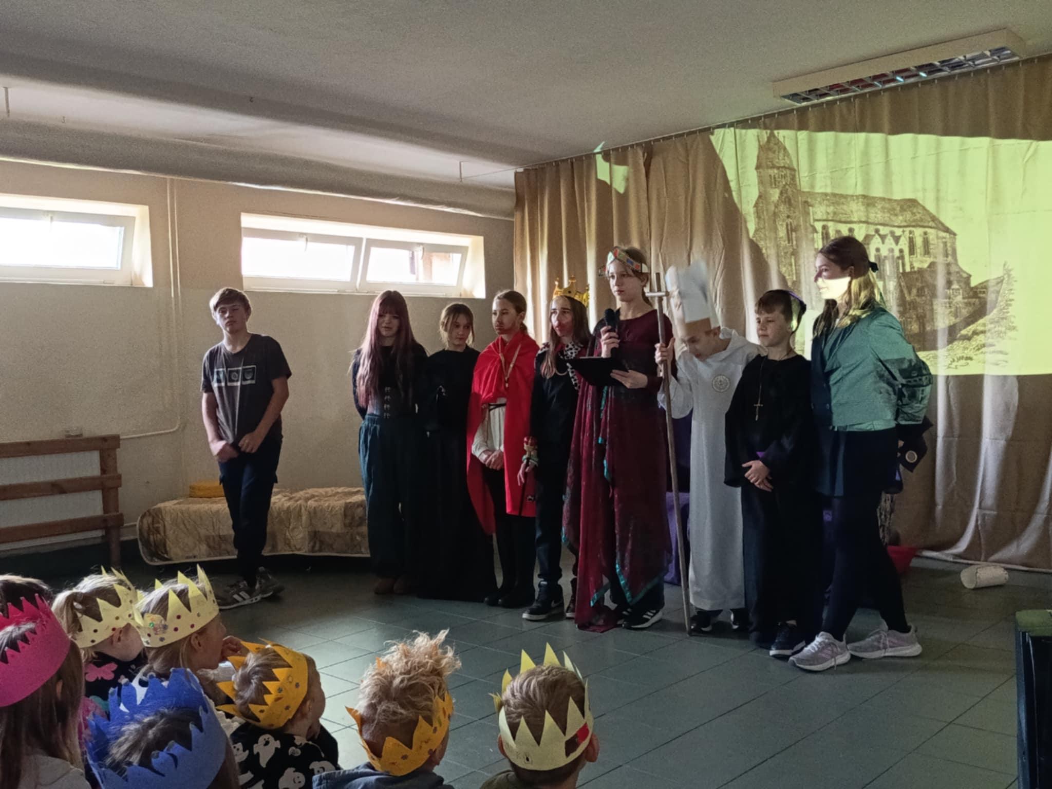 31 października 2025 roku w naszej szkole odbyło się wyjątkowe przedstawienie pt. „Korona i miecz”, przygotowane przez uczniów pod opieką nauczycieli Ernesta Skroka i Anny Rogalskiej. Spektakl przeniósł widzów w czasy Bolesława Chrobrego i pierwszej koronacji królewskiej w historii Polski.