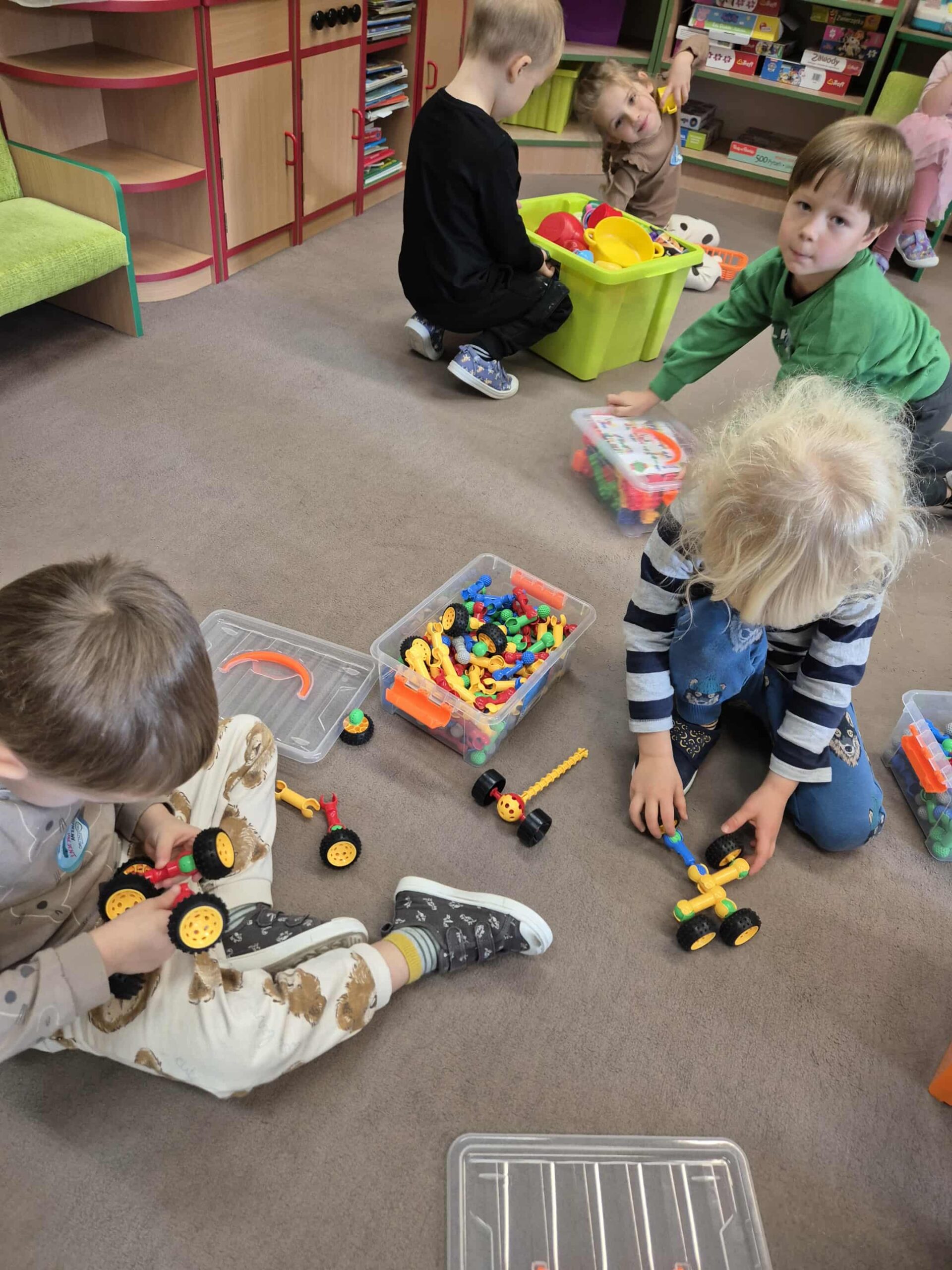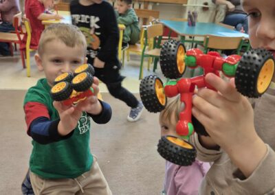 Nasze przedszkolaki nie posiadają się z radości! Nowa szafka, pełna ogromnego zestawu klocków, stała się centrum ich kreatywnych zabaw. Dzięki temu darowi, dzieci mogą rozwijać swoje umiejętności konstrukcyjne i spędzać czas w sposób twórczy i inspirujący. Każdy dzień przynosi nowe pomysły i uśmiechy na twarzach maluchów.