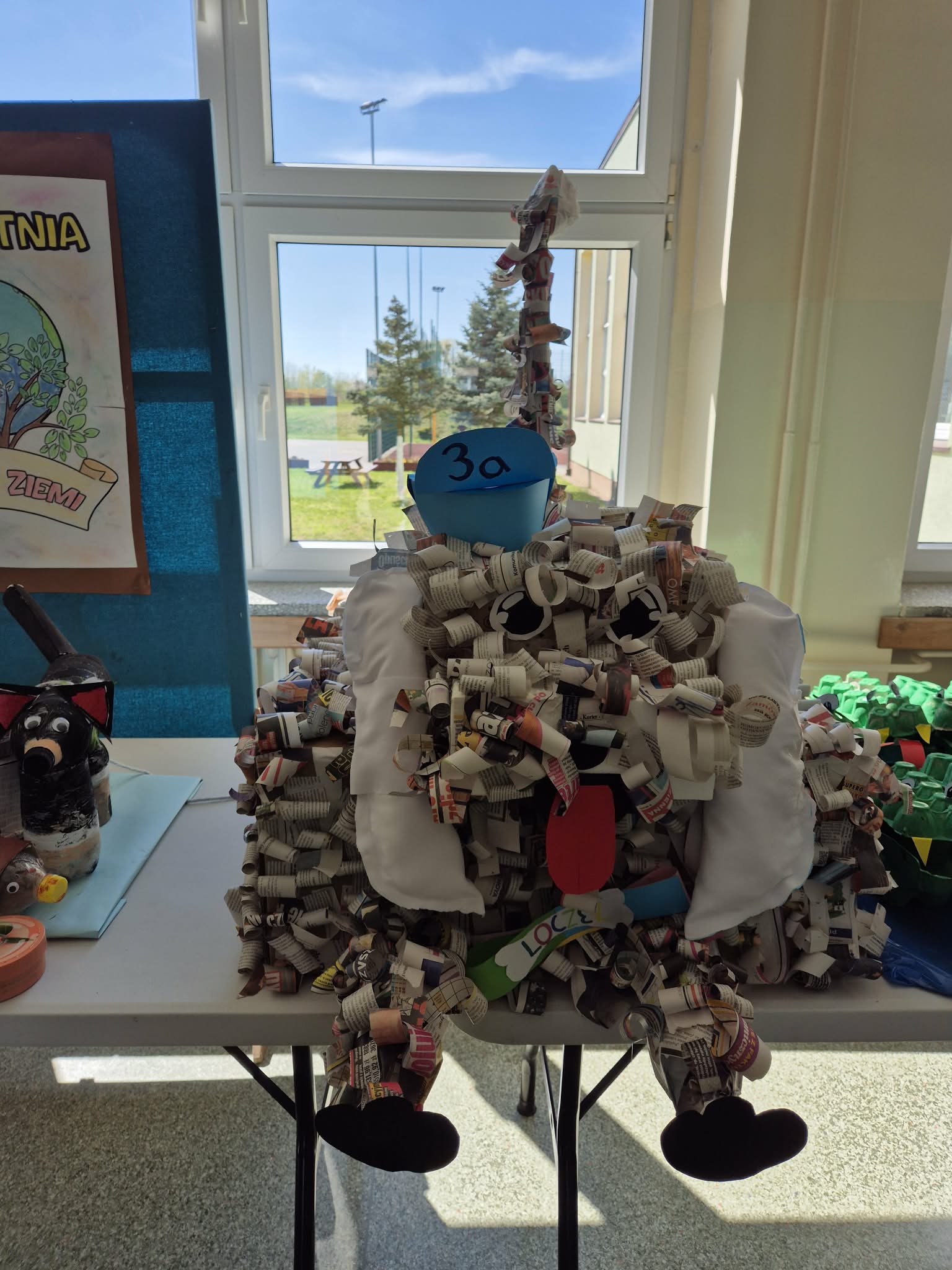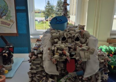 Klasy 1-3 uczestniczyły w zajęciach o tematyce ekologicznej, podczas których wykonywały prace plastyczne z materiałów pochodzących z recyklingu oraz uczyły się zasad dbania o przyrodę.